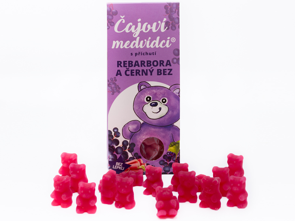 - Čajoví medvídci s příchutí rebarbory a černého bezu 50g (pevný obal)