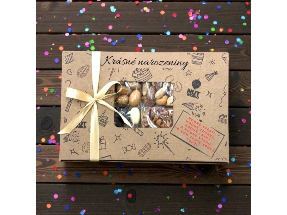 Dárková krabice s oříšky K narozeninám 4x80gSkladem 4 ks315,00 Kč/ ks281,25 Kč bez DPH