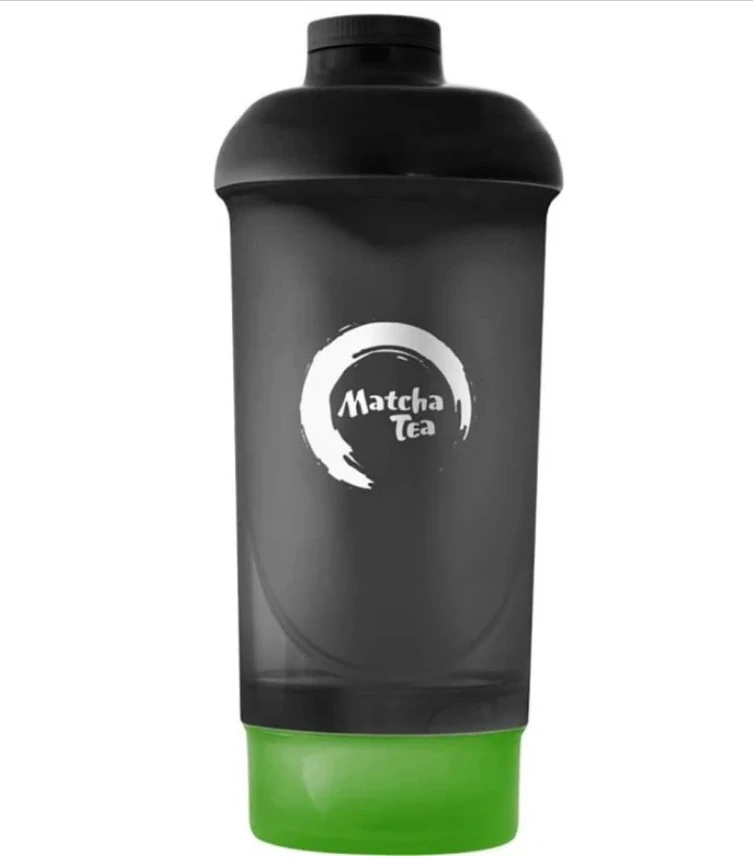 Matcha tea šejkr s objemem 500 ml, sítkem a úložným prostorem na 5 sáčků. Lehce se vejde do držáku v autě i na kole – ideální společník pro přípravu matchy na cestách.
