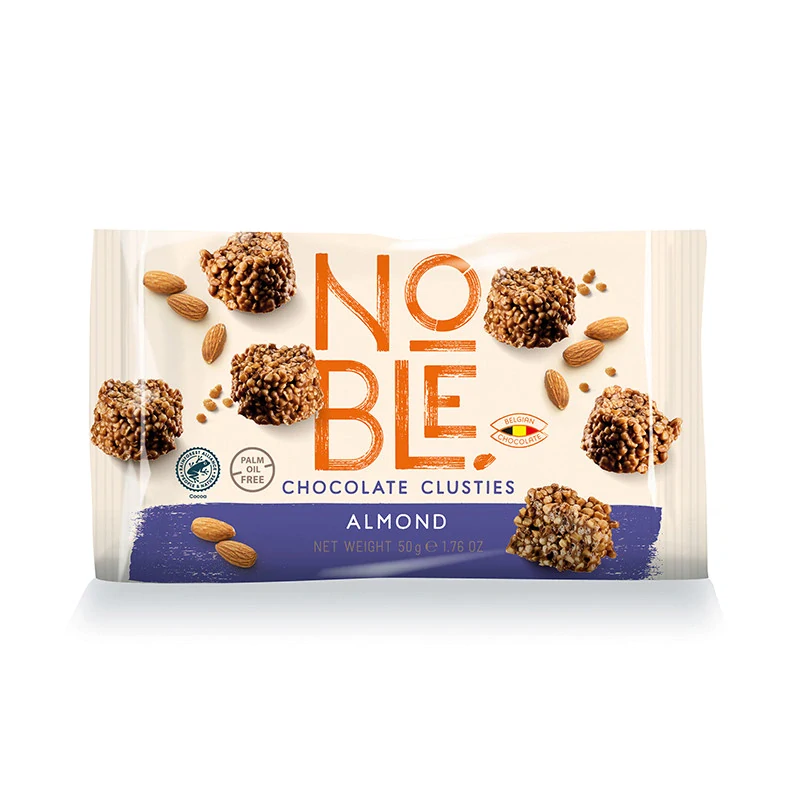Noble Clusties mléčná čokoláda s rýžovými křupinkami a mandlemi 50gSkladem 4 ks62,00 Kč/ ks55,36 Kč bez DPH