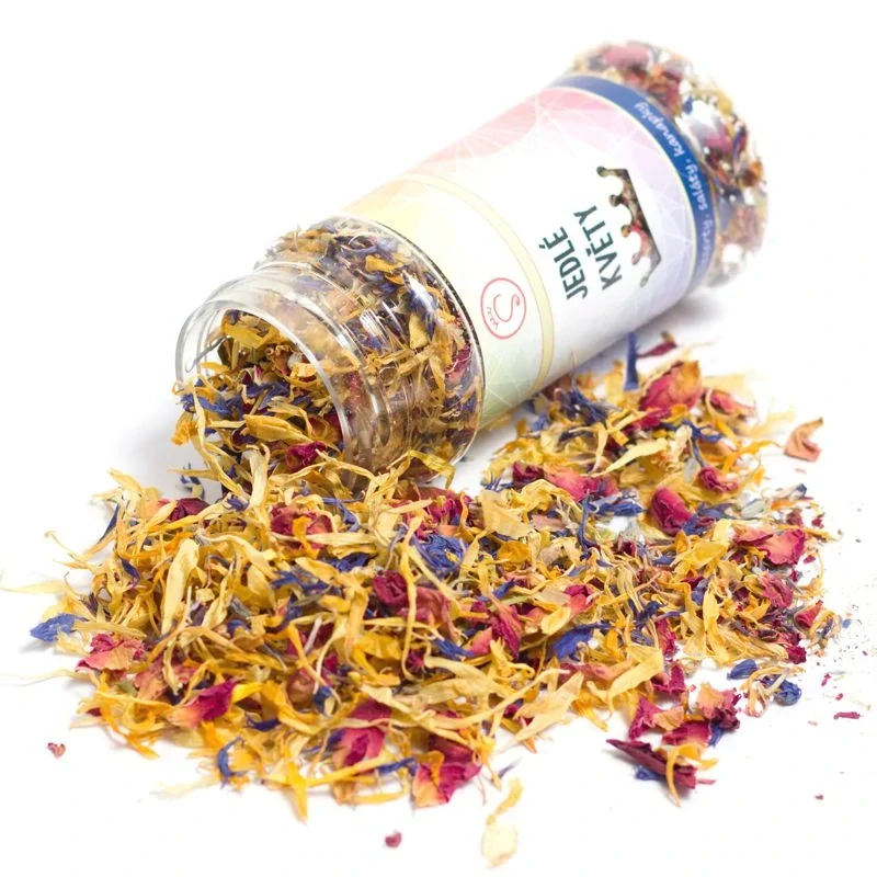 Směs sušených jedlých květů na ozdobu i dochucení dortů, dezertů nebo salátů a dresinků.
