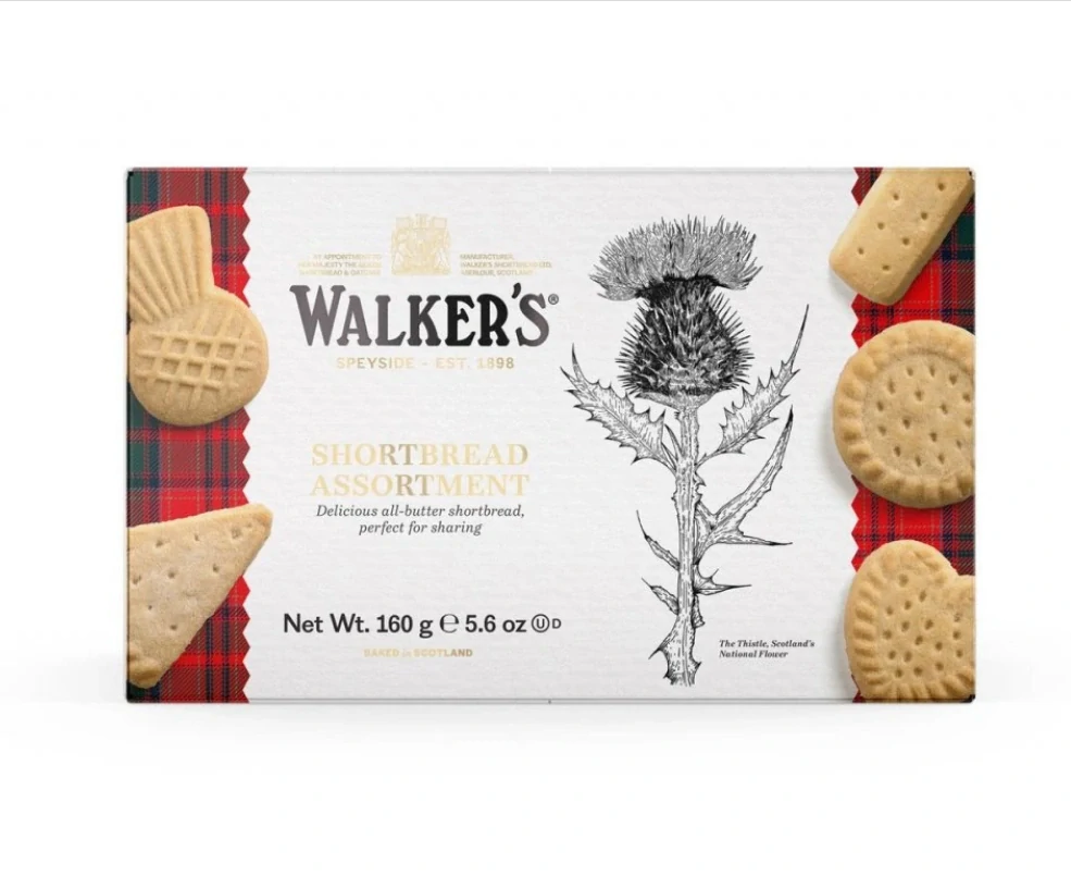 Tato "lahůdková" krabička obsahuje čtrnáct kousků těch nejlepších máslových sušenek od Walkers ve tvaru bodláků, koleček, srdíček, trojhránků a tyčinek. Perfektní jako milý dárek.